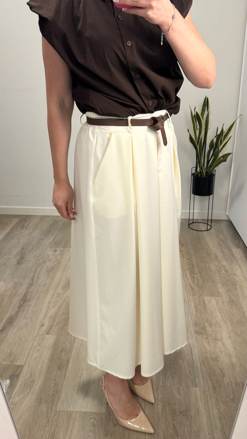 Maglia in misto lana morbida e calda, modello girocollo con maniche leggermente svasate sul fondo che donano un tocco femminile e particolare. Vestibilità comoda, perfetto per look casual con jeans o pantaloni eleganti. Colore delicato e facile da abbinare.